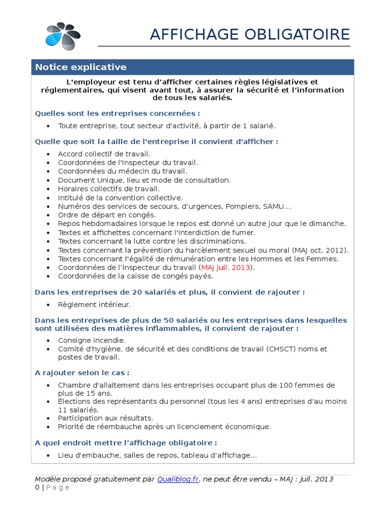 Affichage obligatoire entreprise moins de 20 salari s. Règlement intérieur règles en matière dhygiène de sécurité de sanctions etc. 1 modifications de laffichage obligatoire entreprise 20 salariés 2019 a. Pour une entreprise de moins de 20 salariés. Le point sur les affichages obligatoires en entreprise et un modèle gratuit daffichage à télécharger. Affichage obligatoire 2019 entreprise à partir de 20 salariés b. Laffichage obligatoire entreprise moins de 20 salariés doit comporter des panneaux renseignant les coordonnées de la médecine du travail celles de linspection du travail et celles des services de secours durgence.