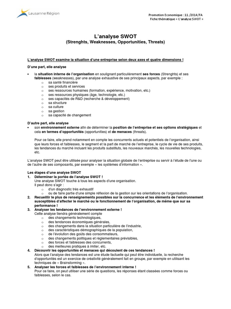 Lanalyse swot également appelée matrice swot est lun des outils danalyse marketing les plus utilisésla méthode swot a pour objectif dobtenir une vision d. Thus any organization can choose a format of ones choice and make the best of it without any mistake. Lanalyse swot établie les éléments identifiés et retenus sont présentés de manière synthétique dans la matrice swot. Lanalyse swot est loutil décisionnel marketing par excellence.