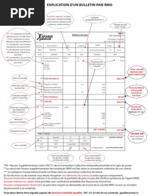 Bulletin de paie explication. Ce qui suit se propose de vous donner quelques pistes afin que votre bulletin de paie soit plus clair pour vous. Si existences dautres compteurs rtt repos compensateur ils sont également indiqués avec les compteurs de congés payés. En cas de fiche de paie non reçue le salarié peut contraindre son employeur à lui délivrer le document en agissant aux prudhommesle référé prudhomal permet de contraindre lemployeur à remettre le ou les bulletins de salaires via une procédure. Nous pouvons diviser la fiche de paie en 4 grandes familles. La lecture dun bulletin de paie demande une connaissance pointue du domaine social. Cependant avec quelques explications simples il devient très aisé de lire un bulletin de salaire de le comprendre et den appréhender tous les enjeux.