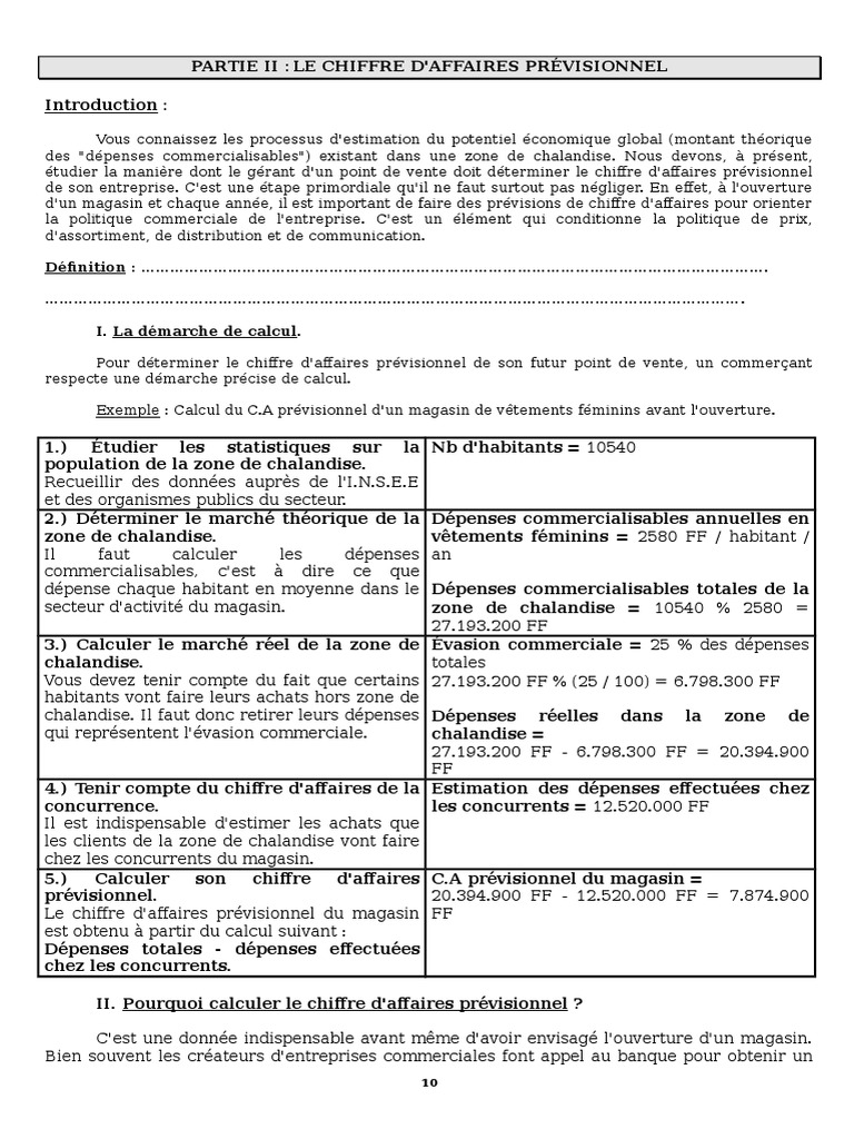 Calcul chiffre d affaire pr visionnel. Il permet dobtenir une idée des rentrées dargent à venir en se basant sur des hypothèses fiables et mesurables. Il convient deffectuer certains calculs en fonction des données récoltées pendant cette phase détude. Cette méthode vous permettra daffiner votre chiffre daffaires et sera votre base budgétaire pour le suivi du chiffre daffaires. Relation entre chiffre daffaires et charges. Evaluation du chiffre daffaire et de la part du marche duration. Mais ce calcul ne peut avoir lieu quaprès une étude de marché bien faite.