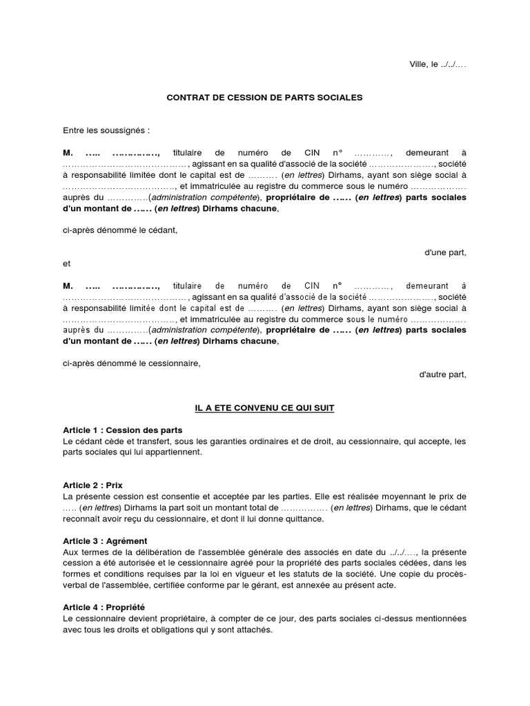 Modele D Acte De Cession De Parts De Societe A Responsabilite