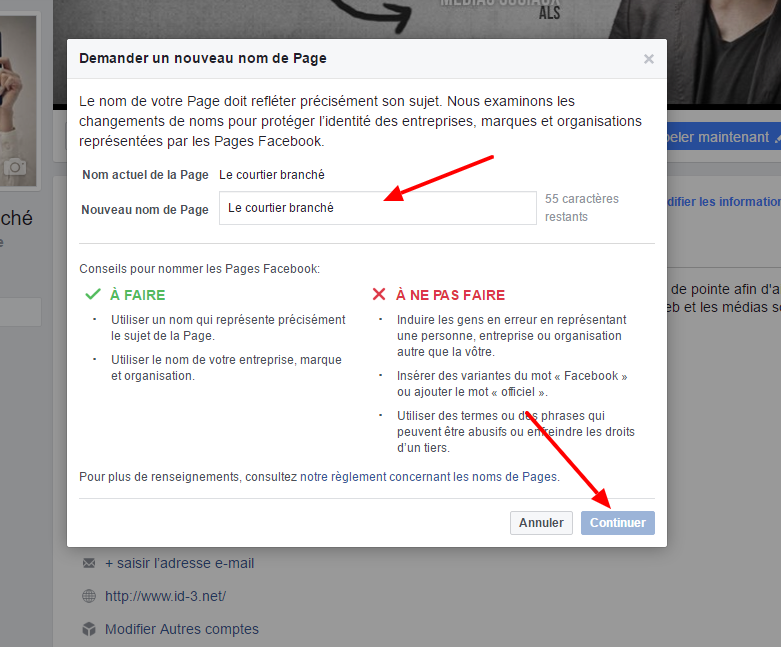 Votre rôle ne vous permet pas de modifier le nom de votre page. You cant change the name of a regional page if it falls under a global page. You or another admin recently changed your pages name. Si loption de modification du nom de votre page napparaît pas. La veille la gestion de le réputation lanimation la modération la médiatisation la promotion dun évènement ou encore la mesure de la performance. Bonjour est ce que possible de changer le nom de la page facebook ayant 11000 fan.