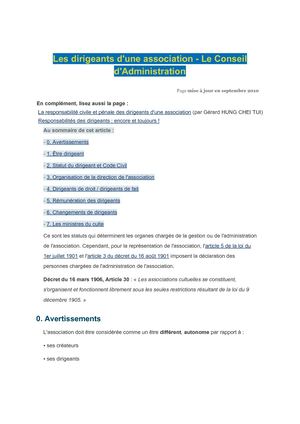 Son domaine de compétence est ladministration de lassociation. Les compétences du conseil dadministration sont déterminées par les statuts de lassociation. Le conseil dadministration. Cette gestion peut être assurée par. Dans la pratique cette fonction est souvent déléguée au président de lassociation. Dans les statuts types le conseil dadministration a des attributions bien définies.