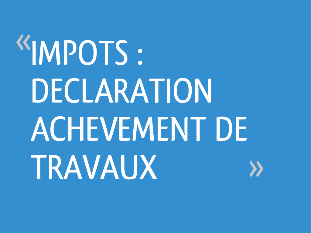 D claration ach vement travaux impots. Dépôt dune déclaration h1 dans les 90 jours suivant lachèvement. Exemples avec lachèvement dune construction en février n. Dépôt dune déclaration 6660 dans les 90 jours suivant lachèvement. Lorsque tous les travaux prévus au permis de construire sont terminés le constructeur doit signer et envoyer limprimé réglementaire de daact à la mairie. Le permis de construire a été accordé pour des travaux précis. Le titulaire dune autorisation durbanisme ou la personne qui a dirigé les travaux par exemple larchitecte doit adresser une déclaration attestant lachèvement et la conformité des.