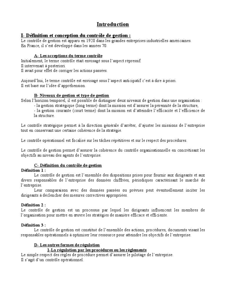 Le contrôle de gestion est lun des organes de la direction générale de la société. Le terme anglais de control a un sens bien plus riche en anglais piloter maîtriser manager évaluer que son équivalent français contrôler et à la différence de ce dernier nest pas connoté négativement. Elle joue un rôle stratégique. Ce processus est axé sur un sens de perfectionnement de la performance des services exercés par lentreprise. Le contrôle de gestion est une procédure durable de management dentreprise permettant dévaluer en temps réel lensemble des activités et réalisations. Le contrôle de gestion cdg est une fonction qui vise à influencer les comportements des managers pour mettre en œuvre la stratégie de lorganisation 1concrètement cela se traduit par la formulation de prévisions en définissant les objectifs en mettant en place les moyens en comparant les performances passées et futures et les objectifs en corrigeant les objectifs et les.