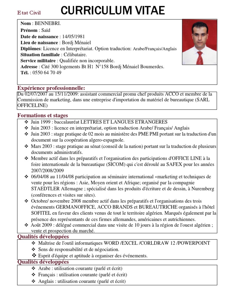 Curriculum Vitae Ghazouanielaziz Etat Civil Situation Familiale