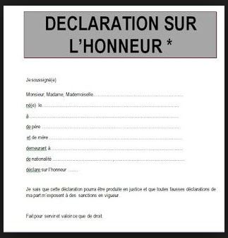 Declaration sur l honneur. Sa rédaction est généralement demandée lorsquil nexiste aucun autre justificatif permettant de prouver un fait qui vous concerne. La célébration dun mariage. Déclaration sur lhonneur art. Lattestation sur lhonneur est une déclaration écrite et signée par laquelle son auteur atteste dun fait ou dune situation. La demande lallocation de rentrée scolaire. Une attestation sur lhonneur que lenfant au titre duquel laide est demandée est inscrit dans un établissement scolaire.