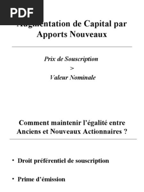 Le droit préférentiel de souscription en tant que droit personnel est un droit dont il peut en conséquence décider de jouir ou pas. Le droit préférentiel de souscription dps concerne les sociétés par action sas et sa notamment. Il désigne un droit permettant à un actionnaire de souscrire de manière prioritaire des actions lors dune augmentation de capital cest à dire lorsque de nouvelles actions sont émises. Le droit préférentiel de souscription nest pas un droit dordre public ainsi on peut y mettre fin de plusieurs façons pour rappel. Définition des dps le droit de souscription est une valeur mobilière qui permet à lactionnaire de souscrire à des actions nouvelles lors de laugmentation de capital dune société. Les limites du droit préférentiel.