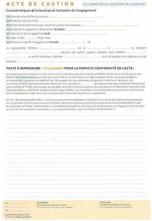 Formulaire à faire remplir à la main et signer par la caution du locataire et à annexer au contrat de location.