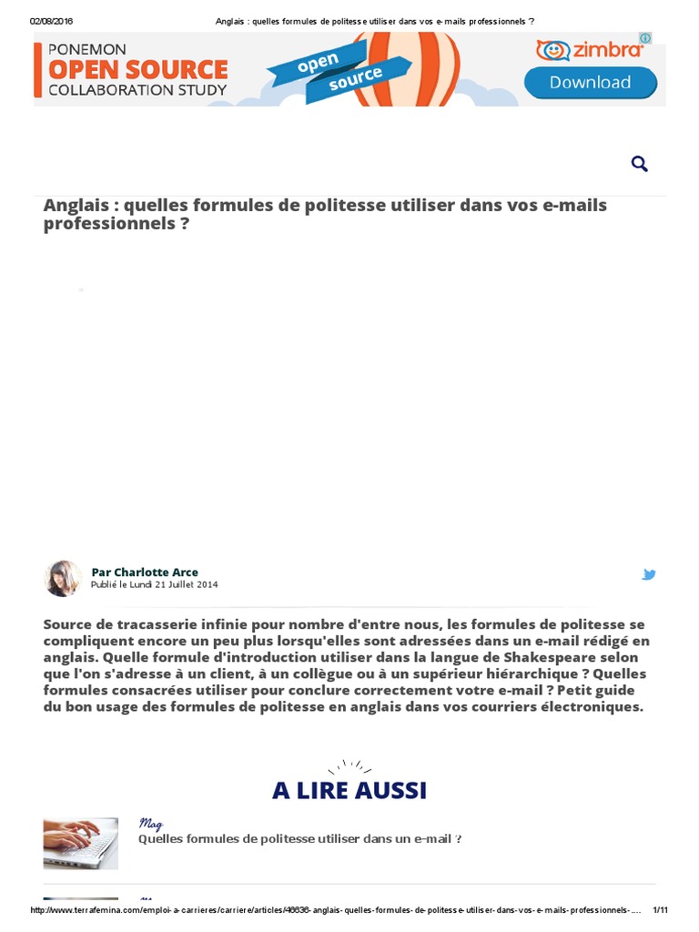 Il est très important de savoir quelle formule de politesse utiliser dans un email ou une lettre de motivation en anglais car une erreur jette non seulement une lumière négative sur votre candidature mais souligne en plus le fait que vous nêtes pas natif et ne connaissez pas les coutumes du pays dans lequel vous postulez. En français autant quen anglais vous devez absolument maitriser les formules de politesse adaptées aux situations les plus courantes.