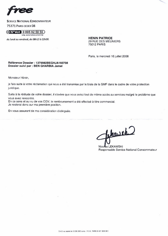 Free service abonn 75371 paris cedex 08. Déjà 2 fois 35mn passées à mengueuler avec les gens de free sans résultat. 75371 paris cedex 08 joindre le service client free par courrier ne se fait pas pour lensemble des démarches possibles. Free service abonnés 75371 paris cedex 08 pourriez vous me dire comment ça sest passé pour vous. 75371 paris cedex 08 nous vous remercions de joindre une copie des courriers déjà échangés ainsi quune lettre détaillant les raisons de votre insatisfaction. Seulement malgré la rapidité de ces recours un envoi postal avec trace écrite pour une valeur juridique que ne peuvent remplacer le courriel ou appel téléphonique. Sinon le service client est joignable par courrier postal à cette adresse.