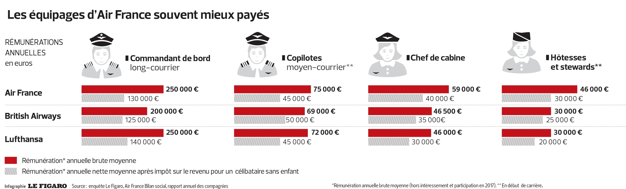 Après trois jour de grèves en lespace dun mois les syndicats des personnels dair france appellent à deux nouvelles grèves les 3 et 7 avril 2018. Qui gagne combien chez air france. Salaire élevé temps de travail faible pas étonnant qu air france soit en difficulté maintenir les salaires ok mais augmenter de 10 leur temps de travail effectif cest pas le bagne d. Découvrez la grille de salaires de air france klm par métier. Le salaire dune hôtesse de lair varie en fonction de la compagnie aérienne pour laquelle elle travaille. Un point sur lequel vous pouvez être rassuré le salaire hôtesse de lair air france long courrier est arrêté conformément au salaire minimum interprofessionnel de croissance.