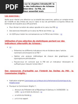 Dans la fenêtre de mon navigateur web les photos et commentaires tombent comme les flocons ils respirent. Expliquer les limites du pib exercice fondamental. Certains indicateur comme le pib vert ou lempreinte écologique tentent de prendre en compte les aspects positifs ou négatifs de la création de richesses sur lenvironnement. Les limites du pib les dirigeants de tous les pays rêvent depuis toujours davoir un pib en constante augmentation. Réponse le pib ne tient pas compte de léconomie souterraine ni des activités hors marché. En revanche le calcul du pib intègre la production non marchande.