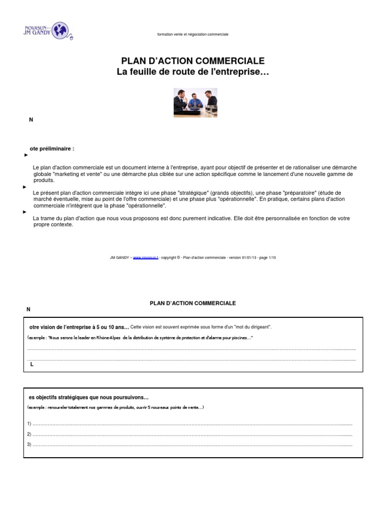 Lobjectif stratégique de lentreprise est de détenir 25 de part de marché sur léquipement 1. Lexemple ci dessous présente un plan daction commercial établi pour un segment de clientèle spécifique. Exemple de plan daction commercial 1 stratégie commerciale. Voici un aperçu de lexcel avec lexemple de plan daction commercial dune entreprise de conception de logiciels.