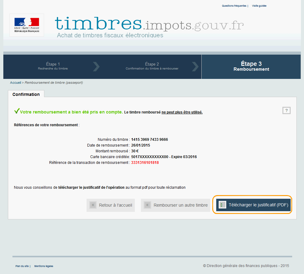Timbresimpotsgouvfr un site de la direction générale des finances publiques. Le remboursement nécessite en effet un délai technique de 3 jours après la date dachat. Remboursement dun timbre fiscal. Le timbre fiscal dématérialisé na pas été utilisé. Il sagit ni plus ni moins dune taxe à acquitter. La durée de remboursement du timbre électronique est de 12 mois maximum.