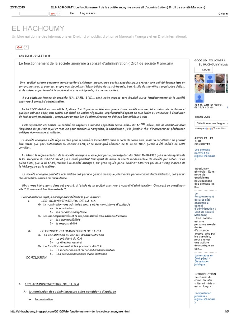 La société anonyme sa est une forme de société de capitaux à risque limité répandue dans les pays de tradition civiliste. Ses droits sociaux prennent la forme dactions librement cessibles. Le nombre de membres varie en fonction de ce qui a été prévu à cet effet par les statuts de lentreprise. Il convient également de préciser que les administrateurs salariés ne sont pas pris en compte dans le calcul de ces plafonds. Voir le statut du dirigeant de sa régime fiscal. Fonctionnement du conseil dadministration de sa.